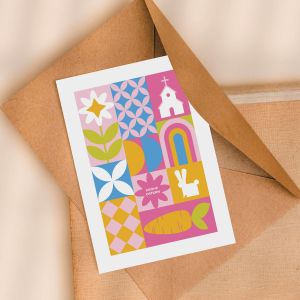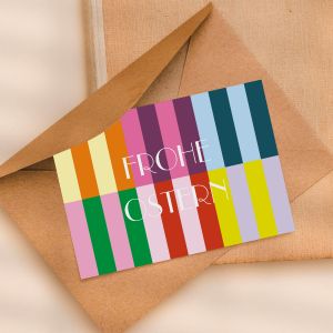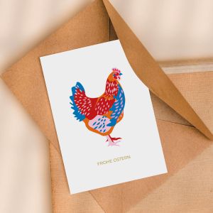 Gestalte jetzt Osterkarten mit fröhlichen Ostermotiven wie Ostereiern, Osterhasen oder Küken.